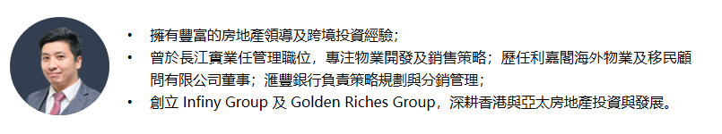 陳先生擁有20多年投資經驗,專注於全球金融投資和房地產。自2018年起,他參與了多個日本房地產投資、開發、規劃和管理專案。在2019年,他建立了日本房地產團隊,並推出了“日本酒店民宿基金”。此外,陳先生還擔任日本Snow Park Resort和Japan Sunshine公司的投資部擔當。